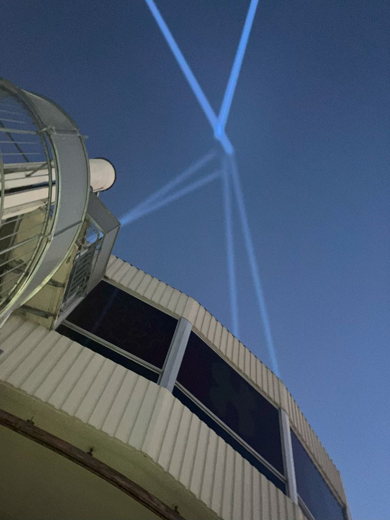 Images : 18 faisceaux lumineux dans le ciel de Mulhouse, sur le toit de la Tour de l'Europe.