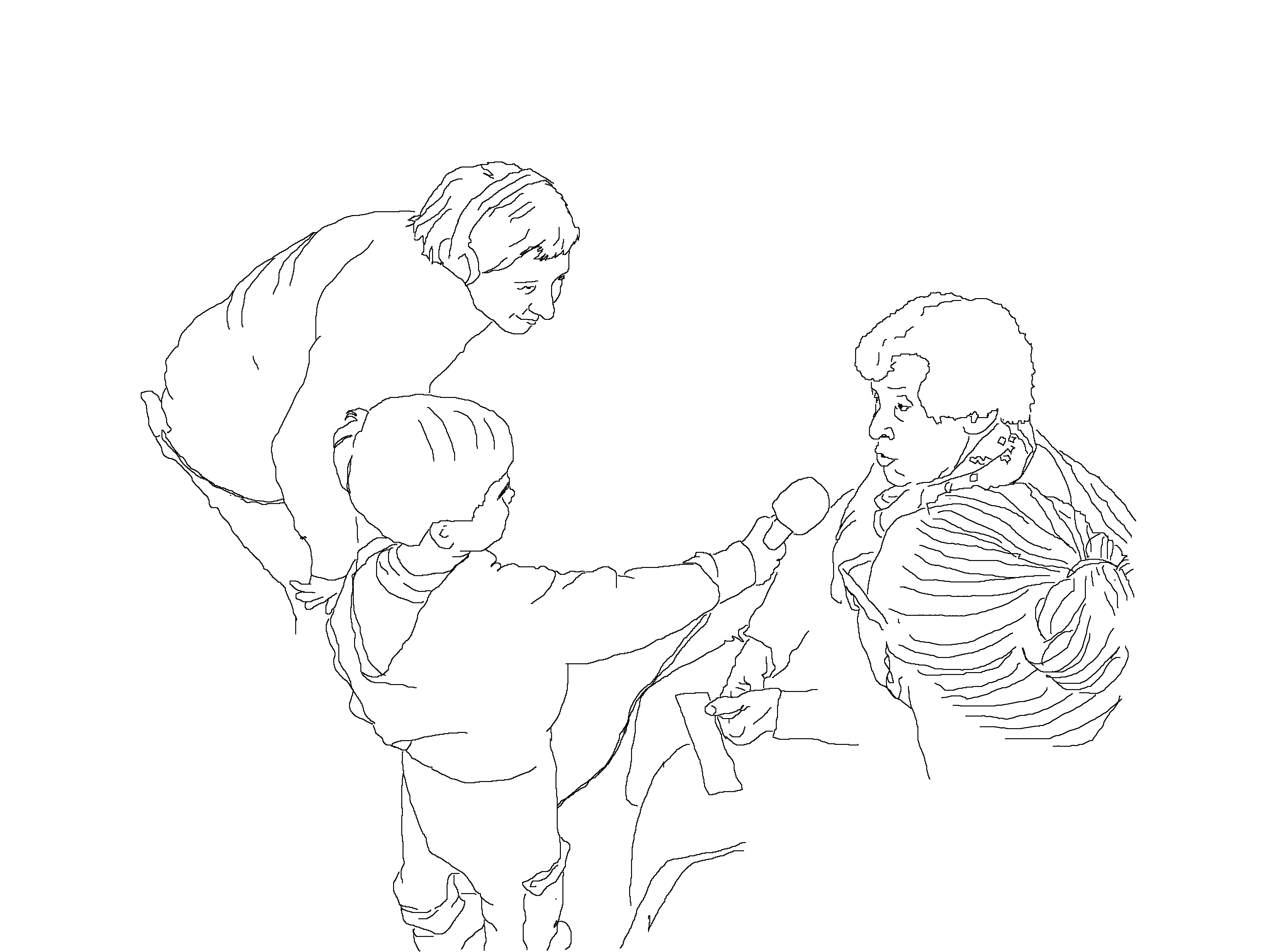 On voulait faire une virée dans le petit bus qui circonvole en une heure entre Le Pré et Les Lilas mais il n’y a pas assez de place pour tout le groupe. On a donc repris la proposition de Martin de lire des contes. Des livres avaient été apportés. Lazlo, Martin, Clotilde, Jackie, Marie-Claude, Huguette, Jeanne-Marie, Paulette, Nelly, Michel, Claire, Pierre et Suzanne (une nouvelle) sont installé·es en cercle autour des enceintes. C'est au cours de la séance du 17 janvier dernier qu'on a trouvé la bonne configuration pour que chacun·e entende et soit entendu·es. Maurice et Colette arriveront en cours et s’installeront en périphérie.