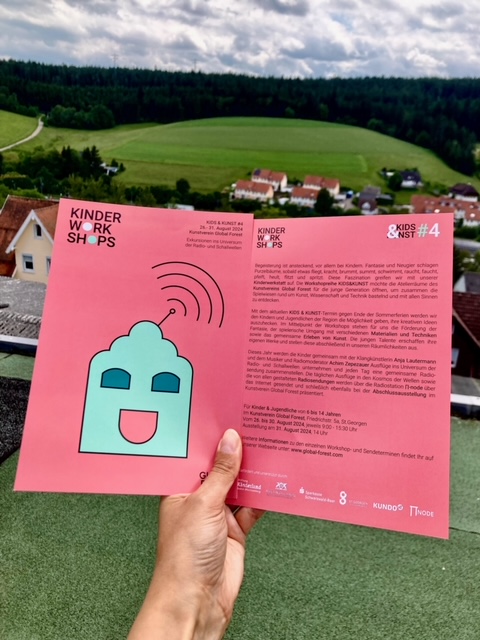 This year, the children will join sound artist Anja Lautermann and musician and radio presenter Achim Zepezauer on excursions into the universe of radio and sound waves and put together a joint radio programme every day. The daily excursions into the cosmos of waves and the radio programmes created by everyone will be broadcast via the radio station ∏-node on the Internet and finally also presented at the final exhibition at the Kunstverein Global Forest.