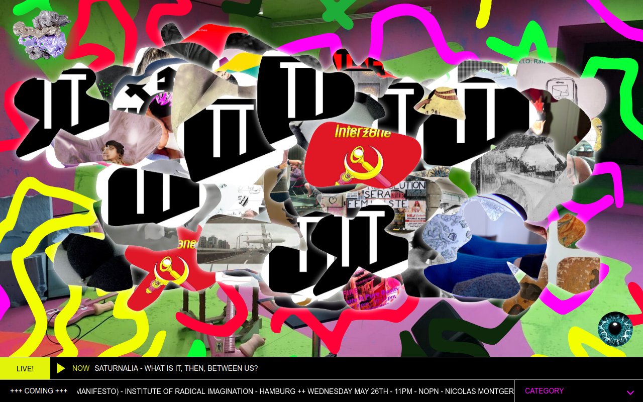 From radical sonic activism to deviant and alternative computing infrastructures, the show broadcasts sonic excerpts of performances and compositions made from and within recent social movements (10/05), interviews with the shadow forces behind self-organized sound art festivals and temporary autonomous (artistic) zones that take advantage of specific infra-urban or rural situations (17/05), self-managed ISP, feminist and anarchist servers and deviant internet hosting mixed with the sound produced by these infrastructures (24/05), the pre-platforms streaming actions and performances, as well as some initiatives that use internet as a dedicated sonic material, media and instrument (31/05). Four mondays in May, live from 7pm to 9pm.
