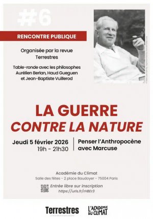 Table-ronde le jeudi 5 février avec les philosophes Aurélien Berlan, Haud Gueguen et Jean-Baptiste Vuillerod. Une rencontre organisée par Terrestres à l’Académie du Climat à Paris (19h00-21h30).